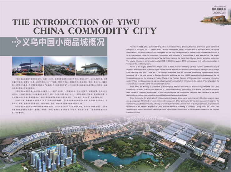 中國小商品城篁園服裝市場地處義烏最為繁華的繡湖商圈,市場總占地117畝,總建筑面積42余萬平方米,總投資14億,余2011年4月份投入使用。篁園服裝市場定位為專業(yè)服裝市場,符合市場國際化、品牌化、多元化的發(fā)展趨勢,有利于提升義烏服裝市場的競爭力,推進專業(yè)化、規(guī)模化發(fā)展。 為優(yōu)化行業(yè)布局,強化競爭實力,突出規(guī)模優(yōu)勢,凸顯市場商機,篁園服裝市場1-5樓布局男裝.皮裝;女裝;童裝;牛仔.褲;睡衣.羊毛衫.運動服.襯衫共5個經(jīng)營類別。