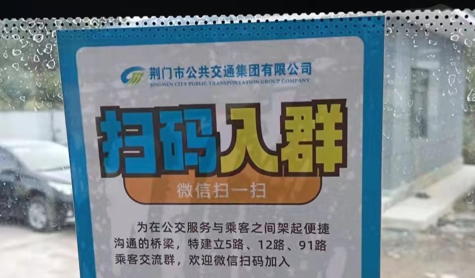 “為在公交服務(wù)與乘客之間架起便捷溝通的橋梁,特建立5路、12路、91路乘客交流群,歡迎微信掃碼加入?!苯?,有乘客在乘坐12路公交車時(shí)新奇地發(fā)現(xiàn),車窗上貼出了一個(gè)名為“掃碼入群”的微信二維碼(如圖)。