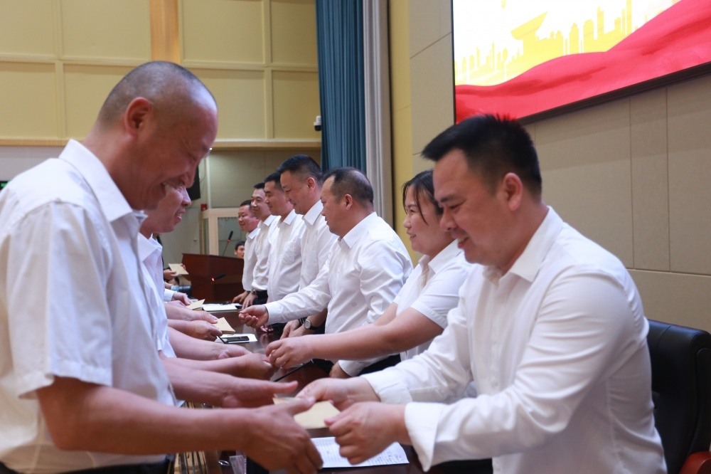 集團領(lǐng)導(dǎo)及中國人壽財險荊門中心支公司負責人為“優(yōu)秀駕駛員”頒發(fā)了獎金。