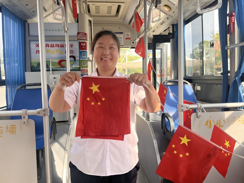 走進(jìn)公交車廂,映入眼簾的是一面面鮮艷的小國旗,輕輕飄動,仿佛在向每一位乘客傳遞著節(jié)日的喜悅和祝福,除了車廂內(nèi)部的裝飾,公交車輛的LED顯示屏也成為了重要傳播窗口,全天滾動播放國慶祝福語。這些細(xì)節(jié)布置不僅為車輛增添了節(jié)日色彩,也讓市民的出行體驗更加美好。