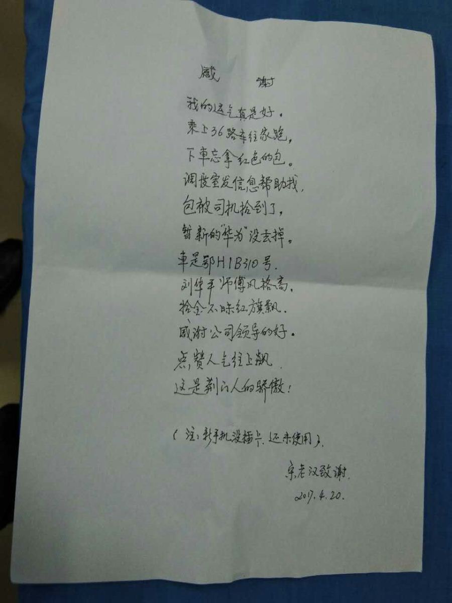 36路司機(jī)拾金不昧,失主作詩贊揚