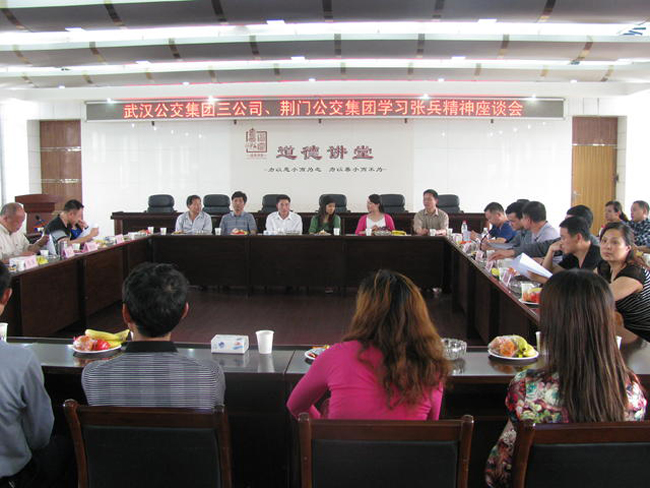 下午,代表們參觀了武漢公交集團(tuán)三公司GPS總調(diào)度室,詳細(xì)了解了GPS的主要功能和作用。隨后,就學(xué)習(xí)張兵精神進(jìn)行了座談。武漢公交集團(tuán)三公司黨委書記姚長江介紹了公司整體情況。荊門公交集團(tuán)副總經(jīng)理張國軍對荊門公交集團(tuán)的總體情況進(jìn)行了介紹。張兵介紹了自己“三零四一”工作經(jīng)驗(零違章、零事故、零投訴;開好每一趟單邊,進(jìn)好每一個站點,用好每一腳油門,服務(wù)好每一名乘客)和27年來為乘客服務(wù)的感想和體會,駕駛員代表們與張兵進(jìn)行了交流和互動,對日常運(yùn)營工作中遇到的問題向張兵請教。