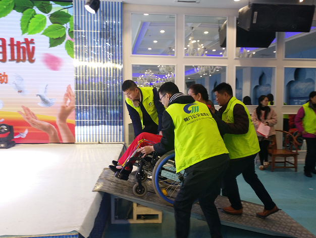 11月30日在荊門市殘疾人聯(lián)合會、荊門市智力殘疾人及親友協(xié)會、荊門市圓夢愛心幫扶會舉辦的主題為“包容殘疾人 創(chuàng)建文明城” 的“2018‘國際殘疾人日’紀念活動中,16名荊門公交志愿者在引導、簽到、幫助殘疾人出行、舞臺道劇、督導等志愿活動中,受到殘疾朋友們真誠的感謝和與會嘉賓、領導們的一致好評。